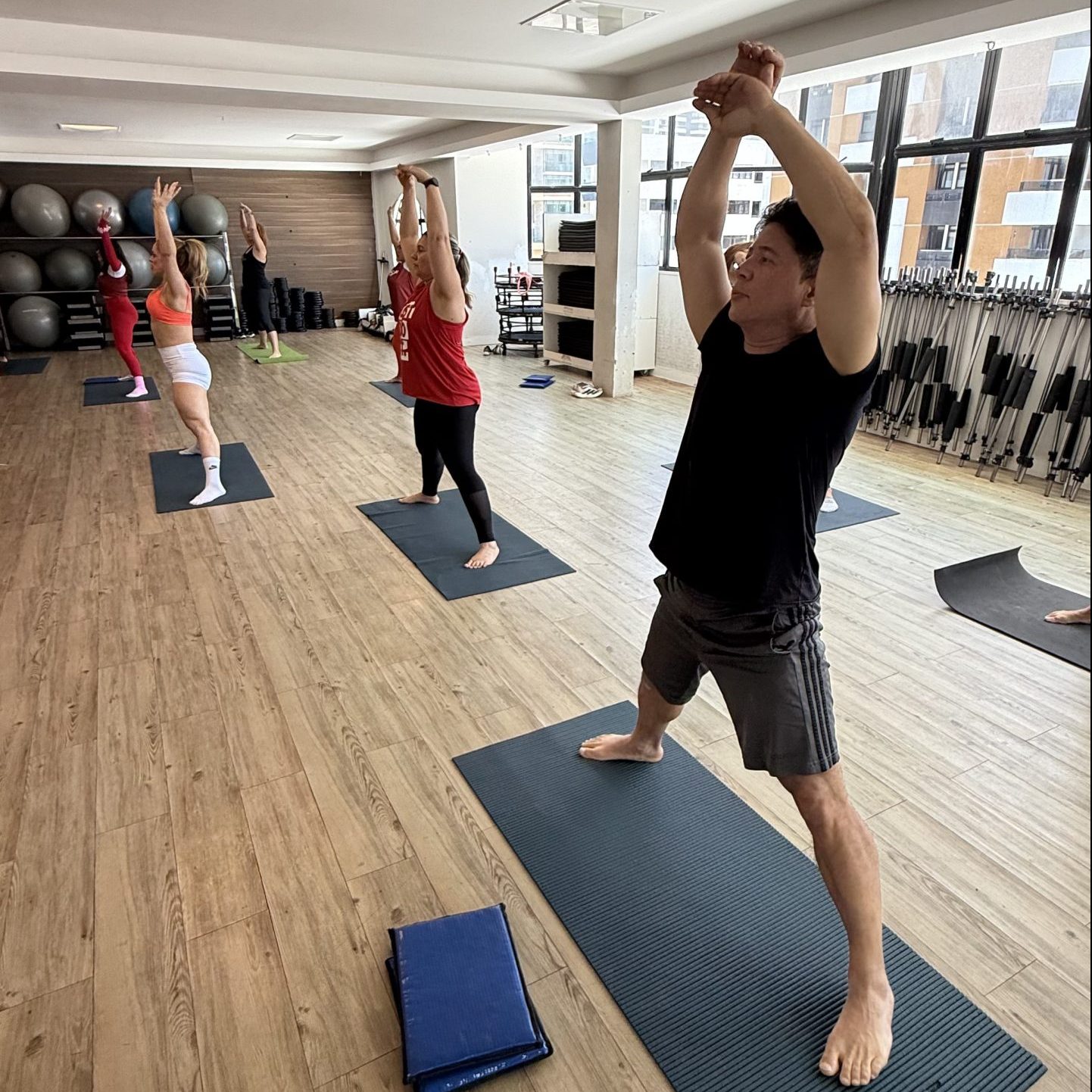 O Body Balance é uma aula coletiva focada em força, flexibilidade, equilíbrio e controle da respiração. É uma prática de baixo impacto, indicada para iniciantes e avançados, que ajuda a reduzir o estresse, melhorar a mobilidade e fortalecer o corpo de forma segura e progressiva.